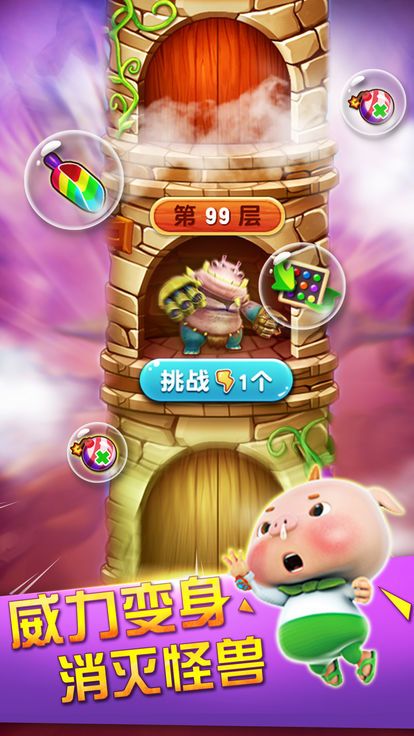 1、游戏鼓励你挑战各种关卡,以获取丰富的奖励,从而免费解锁更多可爱的猪猪侠小伙伴。